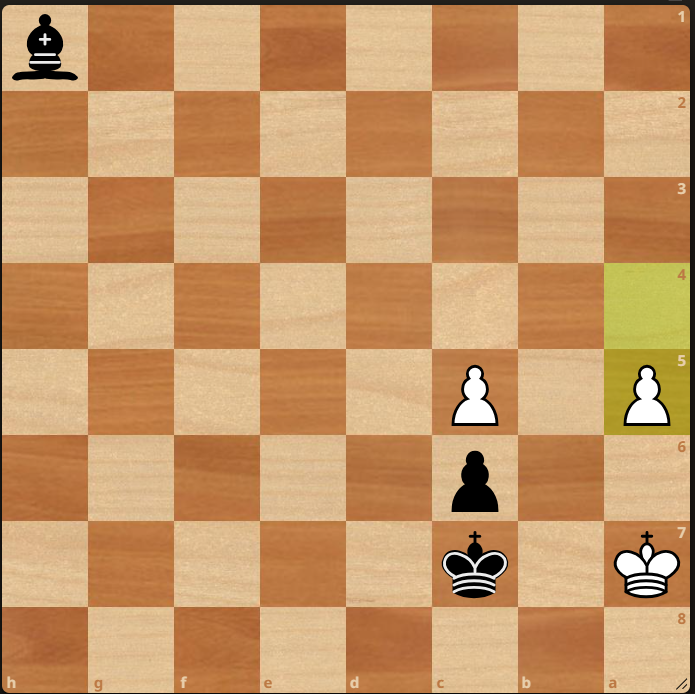 Černý potřebuje sebrat bílého krajního pěšce a cesta k vítězství bude jednoduchá. Ovšem jak ho získat? Černý musí využít nevýhodu tahu.